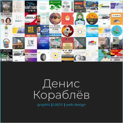 Здравствуйте! Меня зовут Денис — я креативный, многопрофильный дизайнер, занимаюсь полиграфией, айдентикой, графическим и веб-дизайном, разработкой сайтов и приложений. Делаю проекты «ПОД КЛЮЧ»